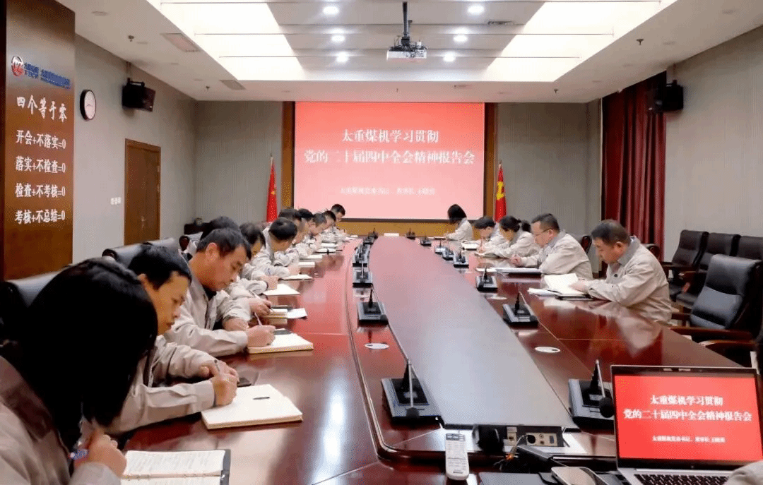 会议要求,全体干部职工要将学习贯彻全会精神与落实集团公司决策部署紧密结合起来,与推动太重煤机自身高质量发展紧密结合起来。公司党委将切实履行主体责任,制定详细学习计划,通过党委理论学习中心组、专题党课、支部“三会一课”等多种形式,组织开展多层次、全覆盖的学习宣讲活动。各级干部要率先垂范,先学一步、学深一层,带领全体职工将学习成果转化为推动工作的强大动力和实际成效。要建立健全督导落实机制,确保集团公司的各项要求在太重煤机不折不扣落到实处,为集团公司发展贡献更大力量。新征程催人奋进,新使命重任在肩。太重煤机将以党的二十届四中全会精神为指引,在集团公司的坚强领导下,统一思想、凝聚力量、锐意进取、扎实工作,奋力谱写公司高质量发展的新篇章!