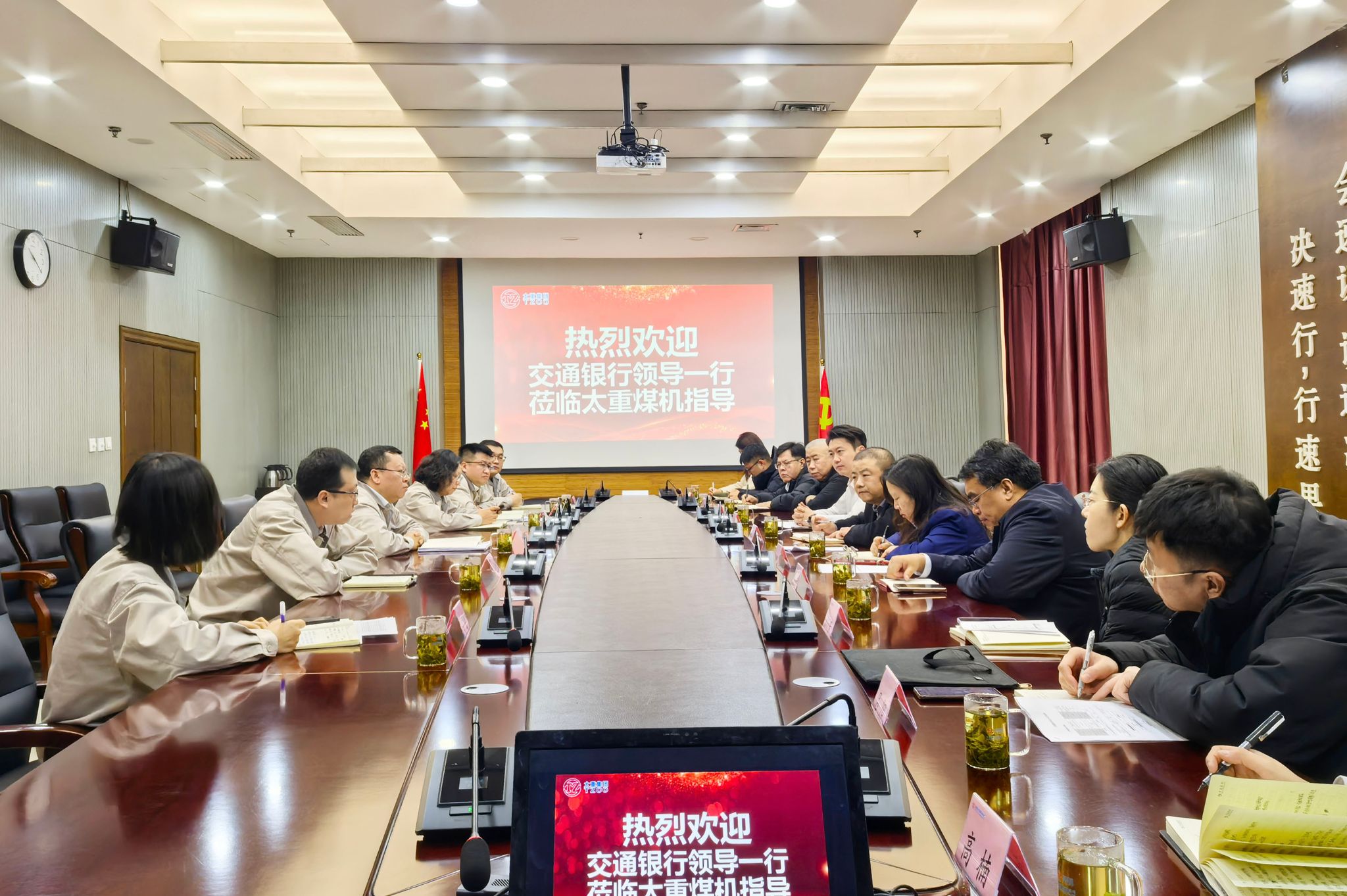 座谈中,太重煤机党委书记、董事长王晓勇首先对交通银行一行的到访表示热烈欢迎,并详细介绍了公司的发展历程、战略规划、核心业务板块以及在市场竞争与技术研发方面取得的突出优势。希望通过银企合作进一步搭建互惠桥梁,促进共同发展。交通银行与会代表对太重煤机取得的成就给予高度评价。此次实地交流,深入了解了太重煤机在技术研发、生产工艺、市场开拓等方面的硬实力与核心竞争力,表示将紧密对接企业需求,发挥综合金融服务优势,提供精准金融支持,助力企业高质量发展。双方一致认为,在当前构建新发展格局的背景下,银企合作对于推动地方产业结构优化升级、培育新质生产力具有积极作用。双方将以此次交流为契机,建立常态化沟通机制,在金融领域探索合作,携手为山西经济高质量发展贡献力量。