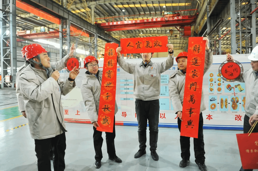 2月14日,太重集团公司总经理助理鲁懿深入太重煤机生产车间,代表集团公司党委,为奋战在一线的职工送上组织的关怀和新春的祝福。慰问过程中,鲁懿还送上了由集团公司党委专职副书记、副董事长、工会主席张新伟亲笔书写的春联,红纸黑墨间饱含着对一线职工的美好祝愿,为即将到来的新春佳节增添了浓厚的文化气息。